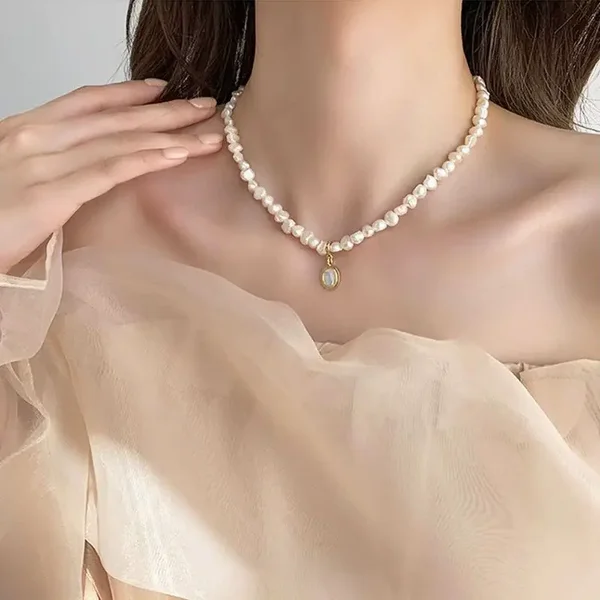 Premium Materials Crafted with genuine moonstone and natural baroque freshwater pearls, each piece is unique, showcasing the organic shape and lustrous sheen of the pearls.