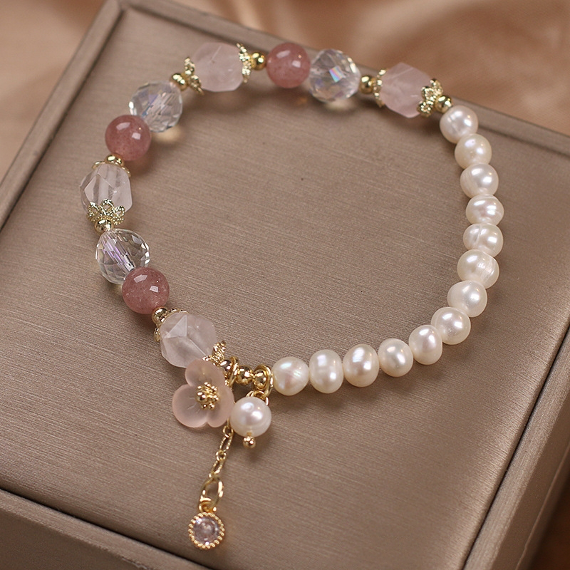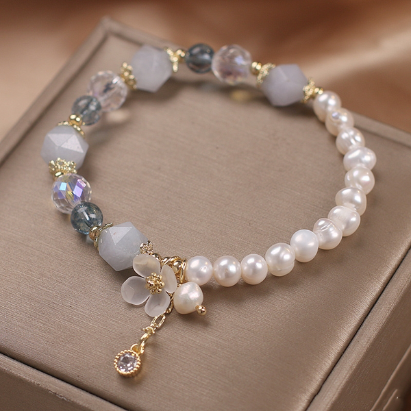 Sweet Freshwater Pearl Crystal Flowers Bracelet