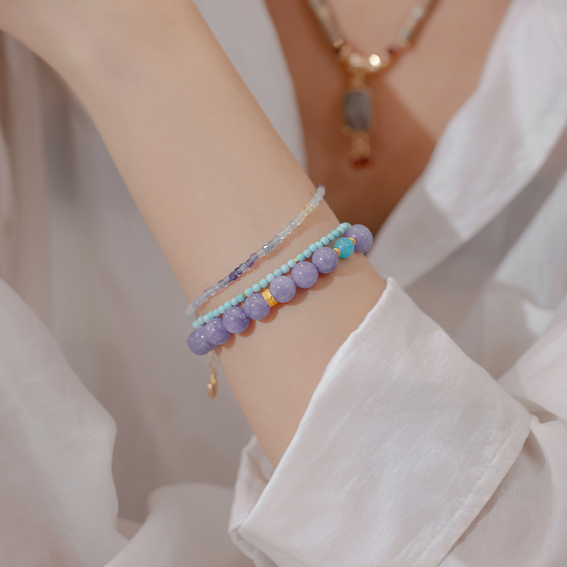 1 x Natural Crystal Semi-Precious Stone Flower Bracelet